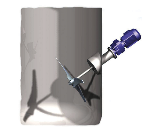 The Alfa Laval ALS side-mounted agitator has an electrical drive motor that transmits the energy required for mixing and blending, either directly or via a gearbox, to the agitator shaft. The shaft rotates, turning the EnSaFoil impeller. The impeller movement creates a high flow with low shear due to the highly effective axial pumping effect on the liquid in the tank. This results in effective mixing and blending of the entire contents of the tank.